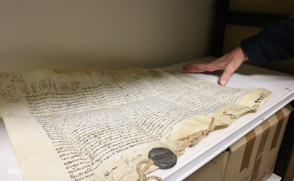 En croisant le témoignage de Fr. Jean-Baptiste et les paroles du directeur du CNAEF, on touche du doigt l’une des limites actuelles de la Province : chaque archiviste a fait les choses avec dévouement mais à sa manière, sans une stratégie d’archivage précise, mise par écrit, avec des actions successives à mener pour pérenniser ce riche patrimoine. Fr. Jean-Baptiste le reconnaît avec impuissance : “Je réponds en priorité aux demandes, car il faut que nos archives soient utiles. Ensuite, je suis obligé de classer ce qui m’arrive au fur et à mesure. Et pour le reste… il y a tant à faire !“ Fr. Jean-Baptiste, comme bien d’autres archivistes de congrégations, se trouve dans un cercle vicieux. Il faut bien qu’il réponde aux demandes pour montrer que le patrimoine des franciscains existe, mais il ne peut pas avancer sur ce qui lui permettrait d’être plus efficace. Je comprends tout à fait sa situation et à moins d’avoir un coup de main, il ne pourra pas faire autrement” analyse Valentin Favrie. S’entourer de bénévoles pourrait être une solution, “mais à condition qu’ils soient formés et suivis” précise celui qui nous redit toute sa disponibilité pour accompagner la démarche des franciscains. “On peut réfléchir ensemble à plusieurs scénarios avec des moyens différenciés, mais en gardant en tête le court et le long terme pour avoir un cap” conclut-il.