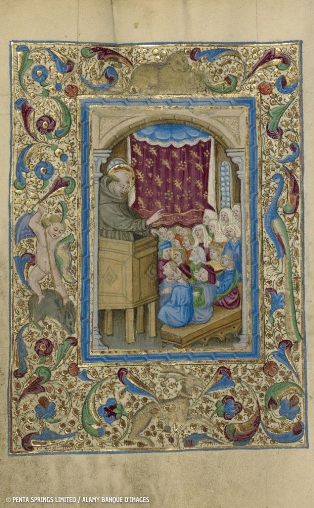 En septembre 1222, non loin de là, dans la ville de Forli, de nombreux frères sont réunis autour de l’évêque avec des frères dominicains pour des ordinations sacerdotales. Au moment de prononcer une conférence spirituelle, personne n’accepte de prêcher. Le gardien de l’ermitage de Montepaolo se tourne alors vers Antoine et insiste : “Vous direz tout ce que l’Esprit saint vous suggérera.” Stupéfaction générale : comment un homme vivant incognito dans le silence d’un ermitage renferme-t-il un tel trésor de science et de connaissance ? On lui confie, sans plus tarder, officiellement la charge de prédicateur. Et en 1224, saint François lui adresse une lettre lui permettant “d’enseigner aux frères la sainte théologie.” C’est ainsi qu’Antoine fondera à Bologne, presque malgré lui, la première école de théologie franciscaine !