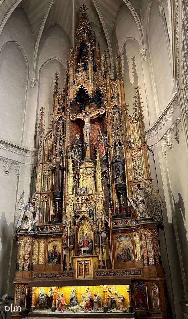 Du parvis, qui tire son nom du frère Piat, figure franciscaine qui a marqué la ville par son engagement social, jusqu’aux “conformités” sculptées sur les confessionnaux, en passant par les grands retables en bois polychromes, peuplés de saints de la Famille franciscaine et classés au titre des Monuments historiques, les clins d’œil franciscains sont nombreux.