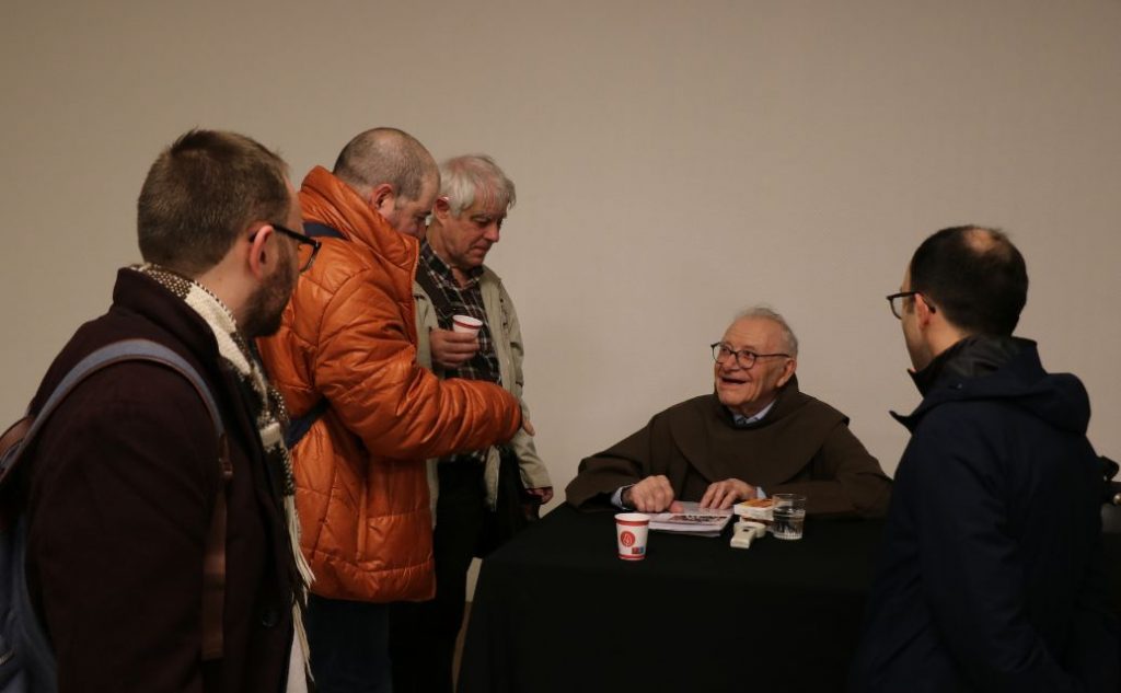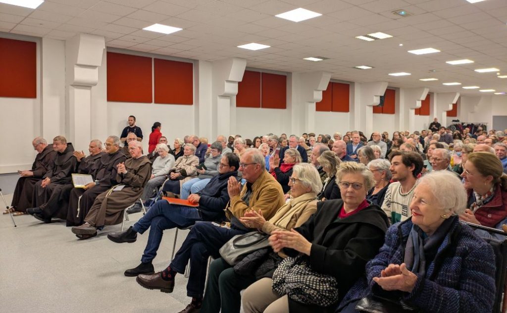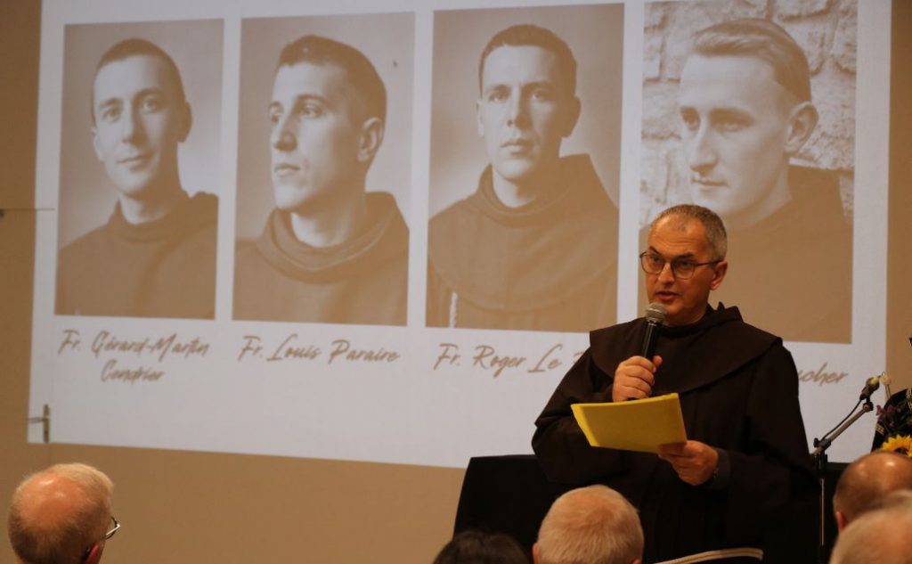 L’assemblée fut prise d’émotion à la lecture de plusieurs de leurs témoignages, pétris de cette spiritualité franciscaine qui les invita, jusqu’à leur dernier souffle, à édifier davantage de fraternité et d’amitié au cœur de cet enfer. « Saint François, à ma place, n’agirait pas autrement », répétait Fr. Gérard Cendrier. Un aspect qui a fortement marqué Fr. Massimo : « Je pense que leur témoignage est très actuel surtout pour les plus jeunes frères de notre Ordre. Ils sont restés unis entre eux et avec les gens qu’ils servaient de façon très concrète, partageant leurs questions et leurs quotidiens. Je crois que leur témoignage peut donner beaucoup de force et de lumière à notre présent obscur. Le martyr ce n’est pas « être fort », ça c’est de l’héroïsme païen. Le martyr chrétien c’est être faible – et combien l’étaient-ils – mais, appelé par Dieu, trouver la force d’aimer jusqu’au bout ». En écho, Fr. Massimo confiait avoir adressé le matin même une lettre à ses frères présents dans des zones de guerre en Ukraine, en Syrie, en Haïti, en Guinée-Bissau ou encore à l’Est du Congo.