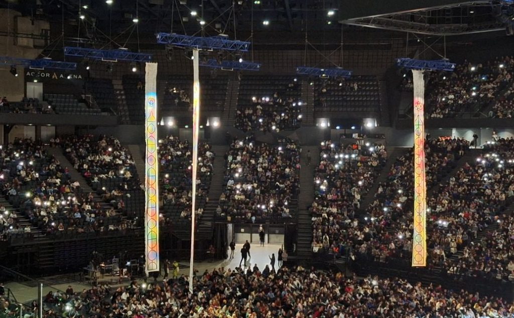 Chaque matin, dans la paroisse associée à Saint-Pierre de Montrouge (Paris 14ème), nous commencions la journée par les chants méditatifs de Taizé, portés par les différentes délégations européennes : allemande, polonaise, ukrainienne, espagnole, italienne, néerlandaise… Le soir, nous finissions la journée au sein du stade de Bercy Arena dont les 15 000 places étaient remplies (ce qui prouve que les prières méditatives attirent autant que les concerts de rock… du moins une fois par an).