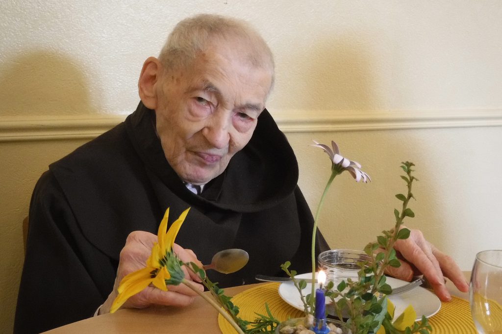 Et si des années furent plus difficiles que d’autres, “eh bien nous faisions des efforts. La vie était plus rude que maintenant, quelle grande différence !”, dit-il en riant. Fr. Mikaël nous emporte dans une autre époque faite d’obéissance, de paillasse en guise de lit, de pain qui manque mais pour lui, pas question de quitter l’Ordre. “J’ai essayé de rester fidèle, mais je ne dis pas qu’il n’y a pas eu des moments difficiles. Quand c’était dur, quand il fallait partir les jours de pluie, je me disais : allez, je vais aller trouver les gens chez eux”. Et si parfois, il fallait aussi demander un morceau de pain, la Providence n’a jamais fait défaut. C’est qu’il fallait anticiper les activités de chacun : “Passer avant le repas pour trouver la mère de famille, éviter les jours de marché…”. Il résume : “Un frère quêteur, c’est un frère qui a l’humilité de demander du secours”. Ainsi, de maison en maison, de ferme en ferme, notre frère partait solliciter la générosité des fidèles : “Je me faisais connaître, j’avais fait le même travail qu’eux, je parlais leur langue, j’étais l’un des leurs. Une relation de confiance se tissait. Ce qui m’a marqué, c’était l’accueil et la disponibilité des gens”. Sa voix se fait soudainement plus forte : “Le souvenir que je garde de la quête, c’est la corde et l’habit ! Les gens s’intéressaient à moi et me questionnaient parce que je portais cet habit. Et c’est pour cela que je le porte encore aujourd’hui, même si je suis le seul de ma communauté. Quelque part, c’est un signe de présence du passé”. La vie de Fr. Mikaël a été et est toujours faite de petites attentions. “J’ai toujours regardé le journal du pays et quand je prenais connaissance de décès dans les familles, je correspondais avec eux en souvenir de leurs bienfaits. J’ai gardé des liens d’amitié à travers cette correspondance”. Une vie bien remplie dont il n’a rien oublié, un “don” qui l’a certainement aidé dans sa mission. Et puis “il y a la prière. Même si j’étais souvent sur les routes, il y avait la pensée et l’intention”
