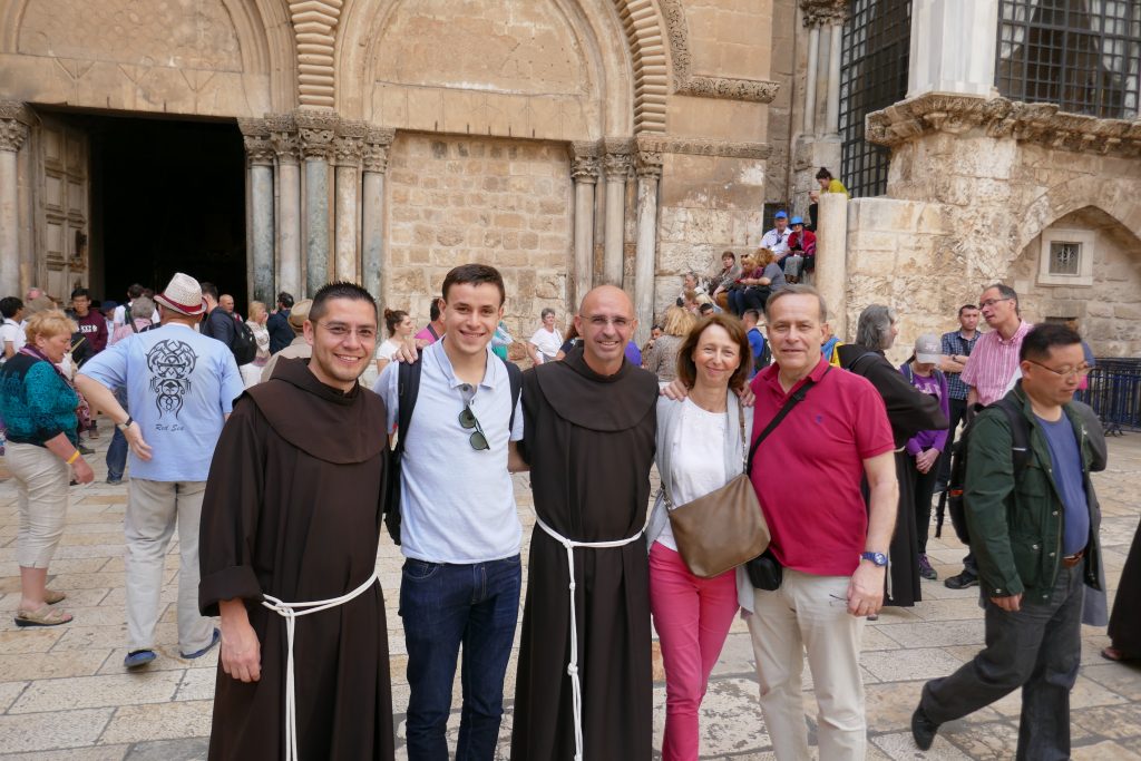 Au quotidien, je passe une bonne partie de mon temps à suivre les offices liturgiques. Certaines fois, si mon courage et mon énergie suffisent, je me rends tôt au Saint-Sépulcre pour vivre, avec les frères, la messe de 6h du matin et retrouver frère Salvador qui vit dans le couvent de la basilique ! Avec lui, j’ai lié une belle amitié depuis 2011 et mon premier passage en Terre Sainte. La spiritualité franciscaine me marque par cette simplicité de vie propre à la pauvreté voulue par saint François, mais aussi par ce souci de l’autre, du plus pauvre, de l’étranger que je suis. L’humilité, l’émerveillement devant la Création et la simplicité dans la relation au Christ sont d’autres éléments qui me touchent. Parallèlement, se manifeste en moi un désir de me mettre à la suite de Jésus en prenant du temps pour me faire accompagner spirituellement par un frère, lui aussi, ami de longue date : le frère David.