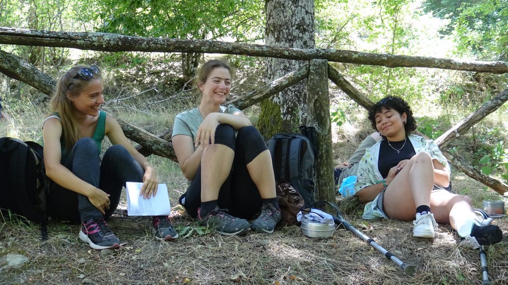 Ce respect de la nature, je l’ai particulièrement apprécié cet été lors de la Route d’Assise, dans le simple fait de dormir à la belle étoile. Le pèlerinage a été riche en réflexion pour moi. Je me souviens de cette phrase de Fr. Nicolas Morin que j’ai notée dans mon carnet : “L’échec fait réfléchir”, à propos de saint François et son emprisonnement à Pérouse. Dans ma situation personnelle et professionnelle, ça m’a beaucoup touchée et fait réfléchir. C’était aussi la première fois que je faisais un pèlerinage avec un groupe de jeunes. Ce qui m’a frappé, c’est la vitesse avec laquelle on s’est accepté chacun, tels que l’on est. Je crois que ça a été le temps d’une journée, même pas ! On a eu également de beaux moments de partage, de prière, de joie, de fous rires et de belles rencontres. Je n’ai jamais eu cette sensation-là et en se disant au revoir, je me suis dit : “Vivement qu’on se revoit les gars !” Depuis, j’ai commencé à réfléchir à la création d’un groupe de jeunes qui veulent découvrir la spiritualité franciscaine. Et puis pourquoi pas (re)partir en pèlerinage ensuite ?